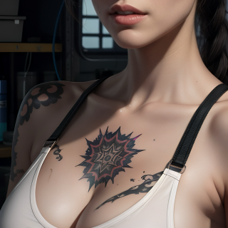 A beautiful face, glistening with a few beads of sweat. Long, jet-black hair pulled back into a high ponytail. Her tight white top, damp and clinging, reveals the striking contours of an explosive tattoo across her chest. Light eyes, filled with depth, shimmer with both satisfaction and anticipation. Yeah… call it a day, baby. You’ve earned it!